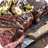 Das moderne Burger- & Steakrestaurant ist im Industrielook inszeniert und auf urbane Art sehr gemütlich und unkompliziert. Gekocht wird nach dem „Back to the roots“-Prinzip: einfach, sehr geschmackvoll und alles selbstgemacht! In der offenen Showküche kann man das rege Treiben in der Küche beobachten, im verglasten Kühlraum reifen Rinderhälften an Haken, in den Grill-Öfen brutzeln die Dry Aged Steaks und auf der Theke türmen sich Gemüse und Antipasti.